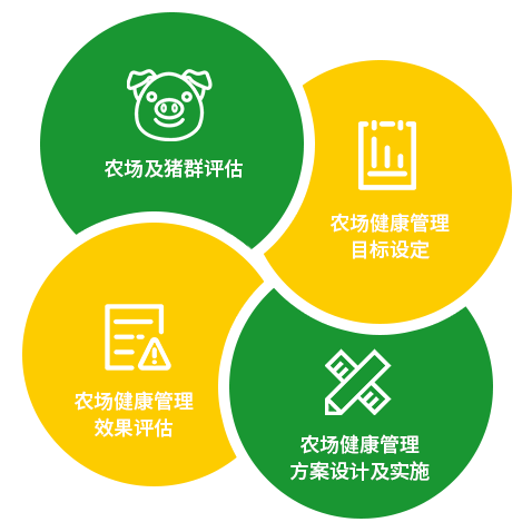 康地健康管理方案工作內容主要包括:農場及豬群評估、農場健康管理目標設定、農場健康管理方案設計及實施、農場健康管理效果評估等,持續幫助農場減少健康問題帶來的巨大風險。
